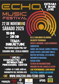 O Festival ECHO 2025 chega à sua nova edição celebrando a diversidade, a criatividade e a força transformadora da arte. Realizado na cidade de Hamamatsu, o evento reúne artistas, músicos, performers e coletivos de diferentes origens para criar um espaço vivo de encontro, experimentação e diálogo.