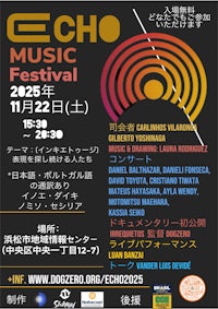 O Festival ECHO 2025 chega à sua nova edição celebrando a diversidade, a criatividade e a força transformadora da arte. Realizado na cidade de Hamamatsu, o evento reúne artistas, músicos, performers e coletivos de diferentes origens para criar um espaço vivo de encontro, experimentação e diálogo.